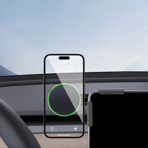 هذا الدعم المغناطيسي المصمم خصيصًا لتيسلا يسمح لك بتثبيت هاتفك الذكي بأمان أثناء الاستمتاع بالشحن اللاسلكي. تصميمه الأنيق يتكامل تمامًا مع المقصورة ويضمن ثباتًا حتى على الطرق غير المستوية. استمتع براحة مثالية للتنقل والموسيقى أو المكالمات اليدوية.