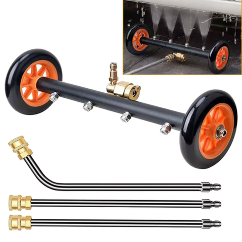 המנקה של שלדת הרכב הוא האביזר המושלם לשמור על החלק התחתון של הרכב שלך נקי בפשטות. מצויד במציננים עוצמתיים ובגלגלים חזקים, הוא מתחבר בקלות למנקה הלחץ הגבוה שלך בזכות החיבור המהיר 1/4". רב תכליתי, הוא מתאים גם להסרת בוץ ומלח מתחת לרכבים וגם לשטיפת מרפסות, שבילים ומוסכים.
