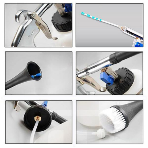 Deze hogedrukreiniger zorgt voor een snelle en effectieve reiniging van het interieur en exterieur van het voertuig. De conische mondstuk in combinatie met een roterende actie richt zich op ingebedde vuil. Compatibel met elke luchtcompressor, bereikt hij moeiteloos moeilijk bereikbare plekken.
